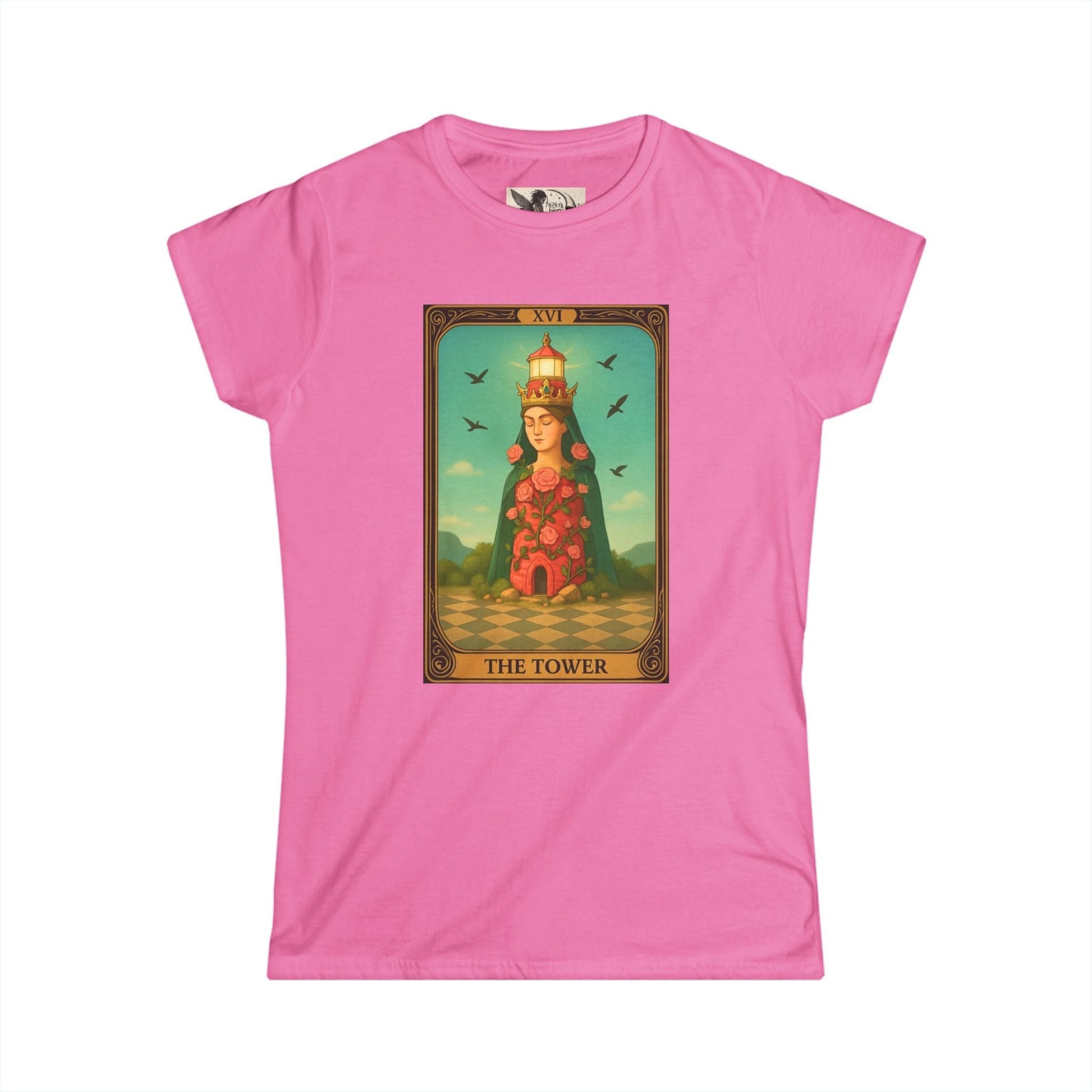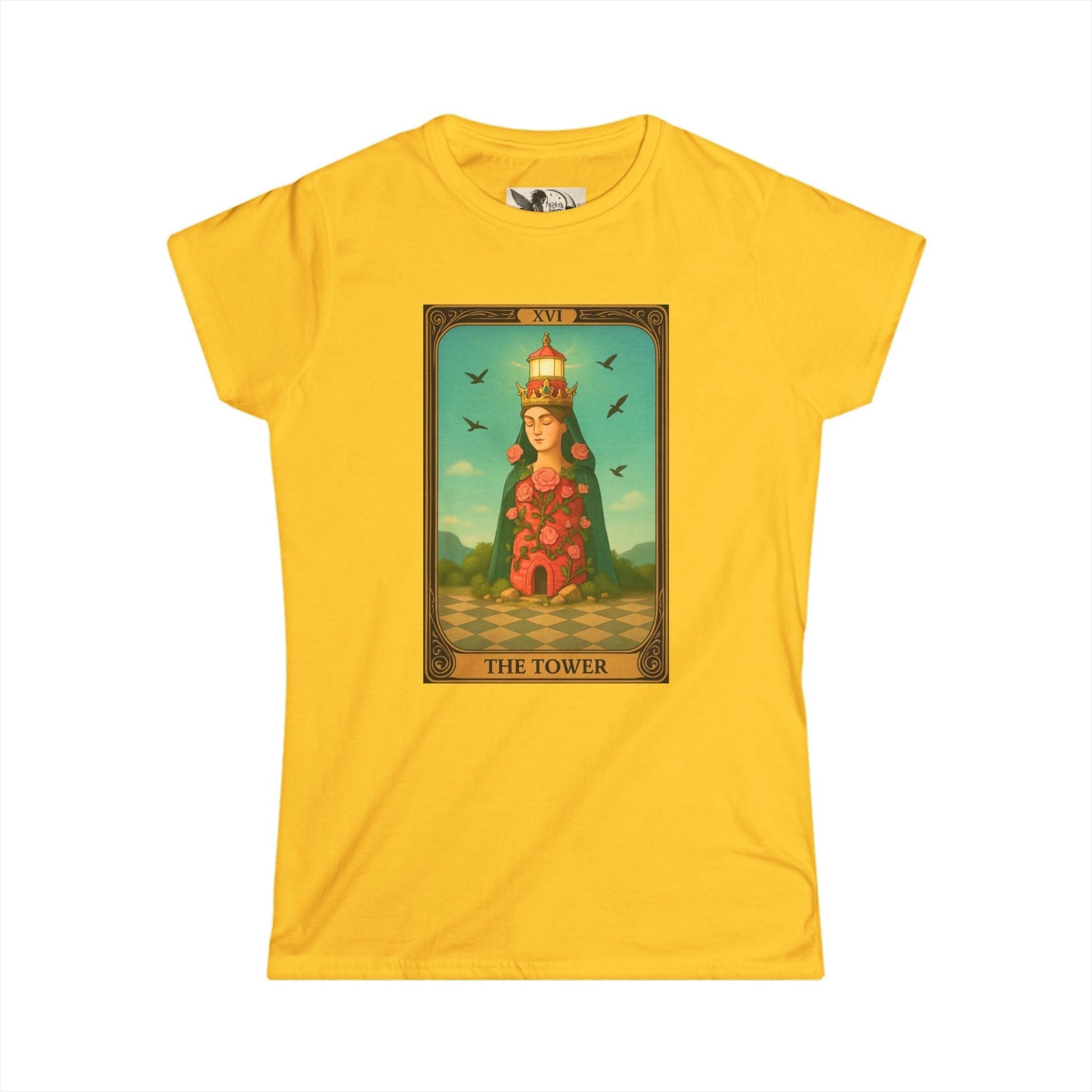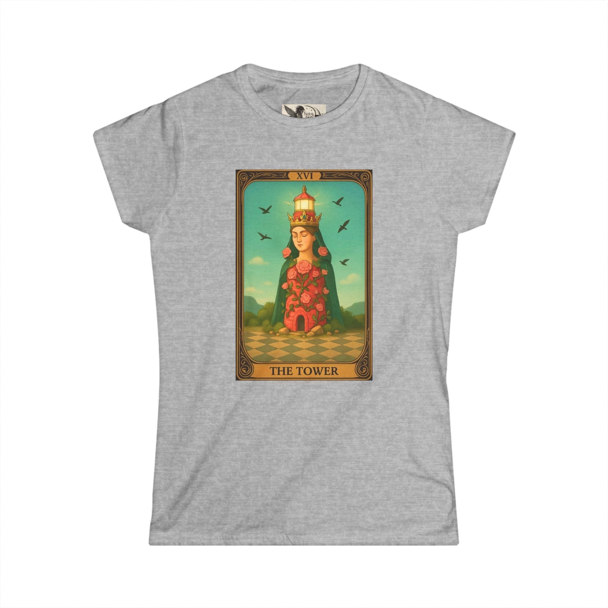 Graphic Tees Women Tower Tarot-Themed Women's Softstyle Tee, Spiritual Gift for Tarot Lovers, Casual Wear, Unique Graphic Tee, Astrology Apparel, Gift for Her