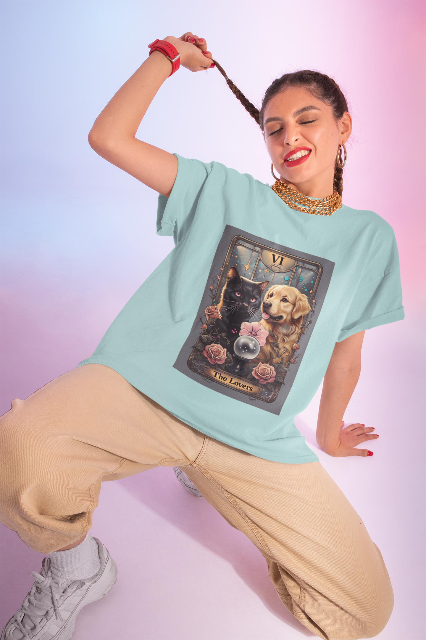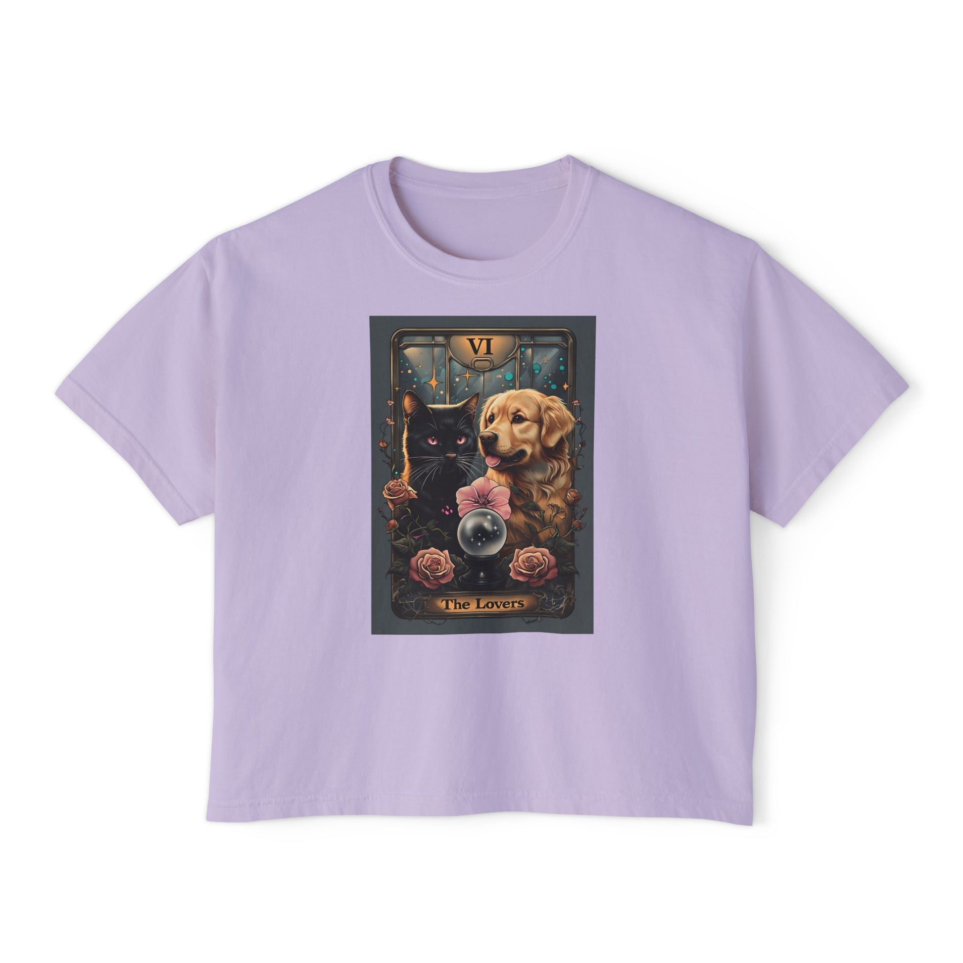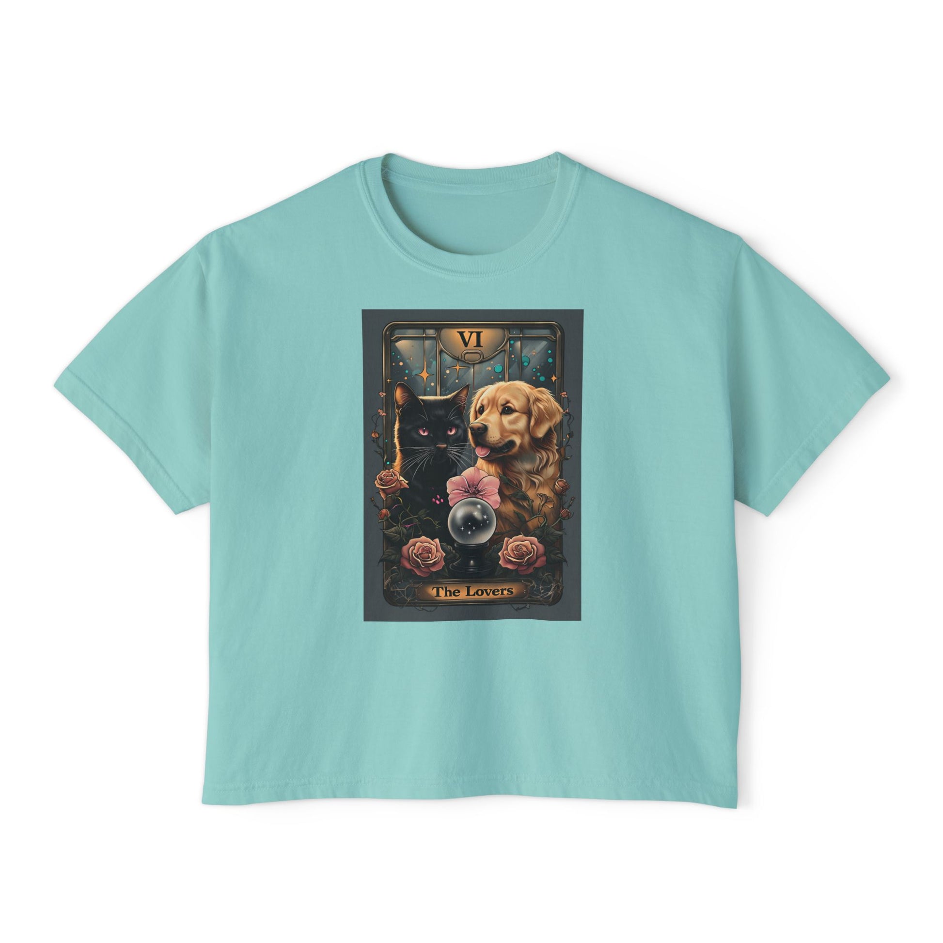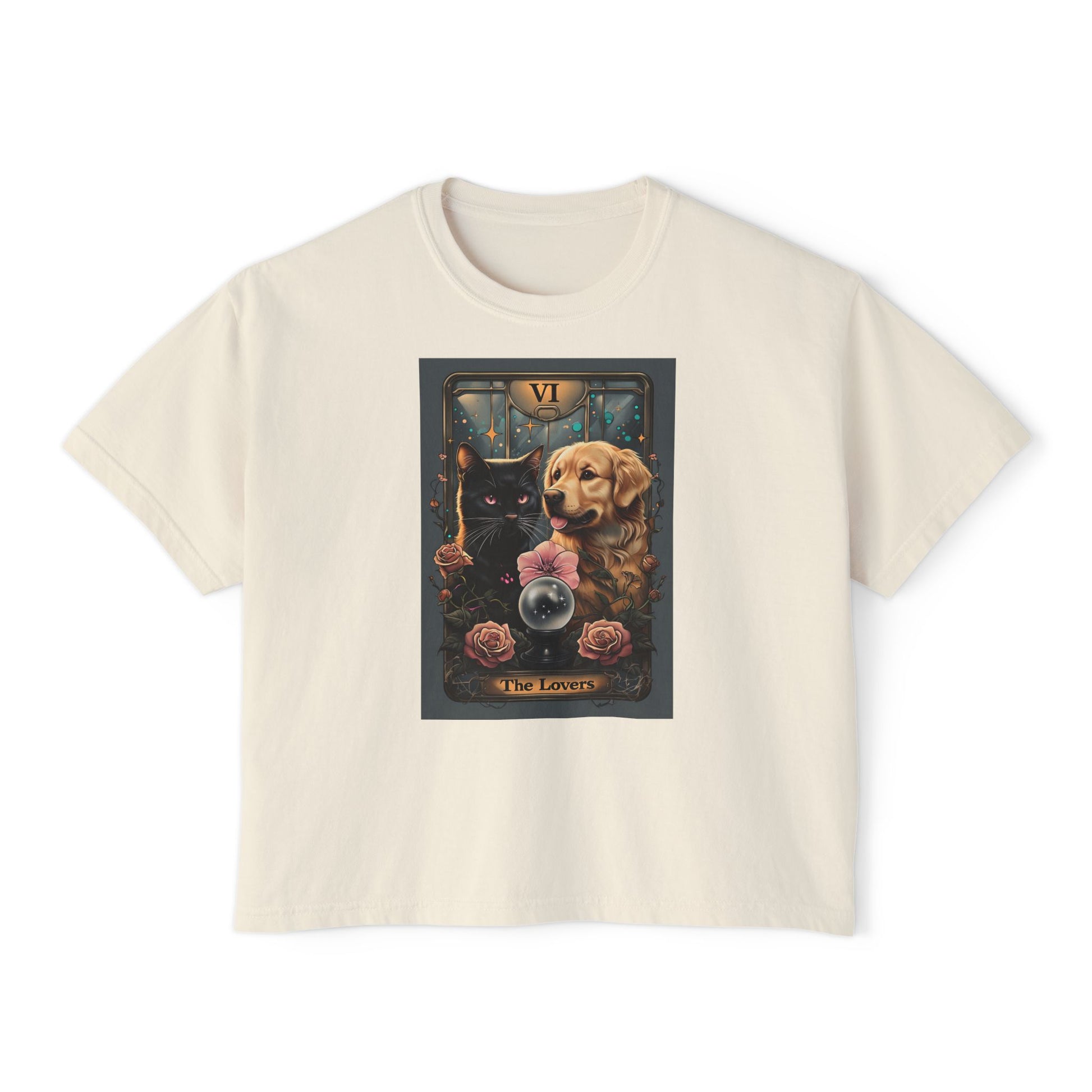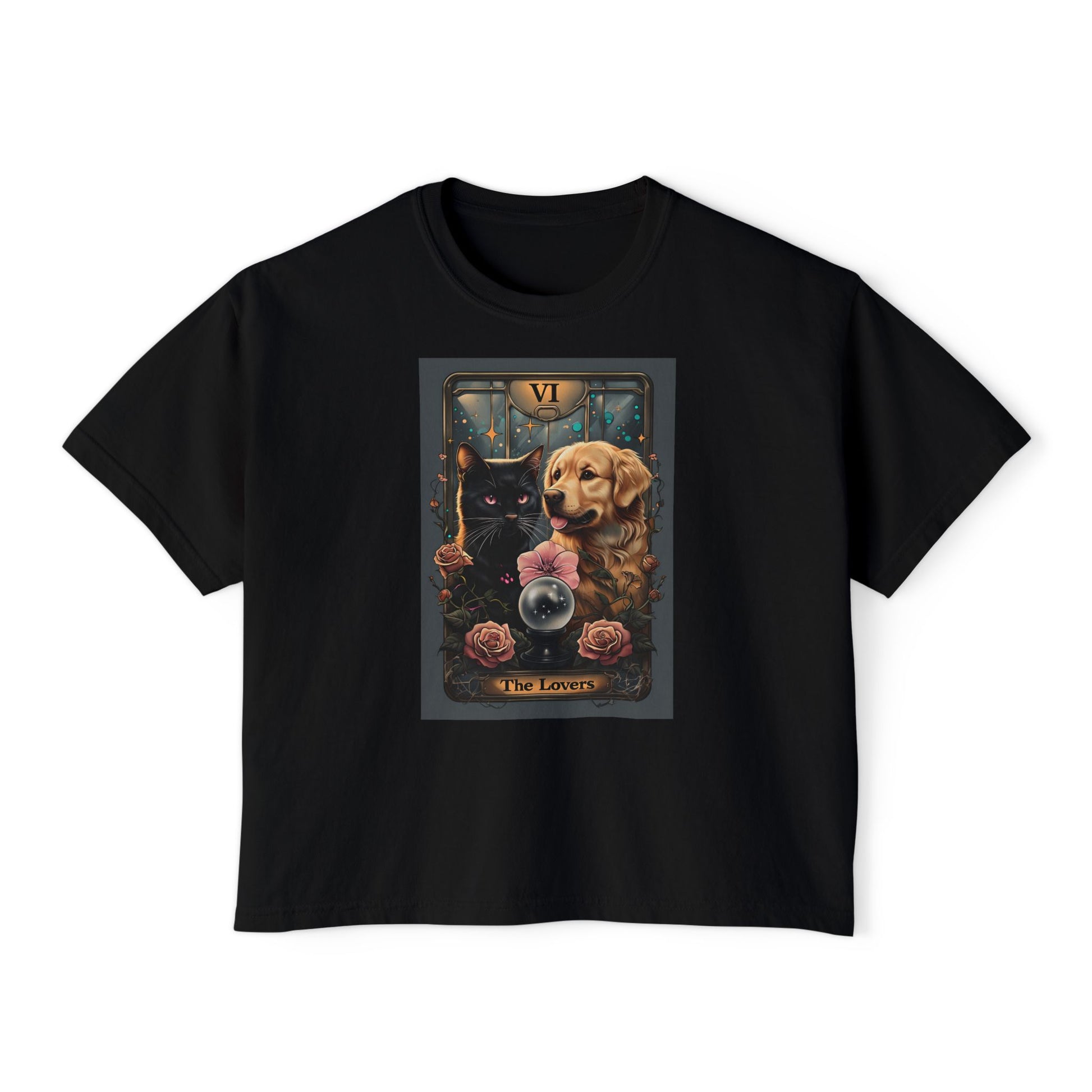 The Lovers Tarot with Black Cat and Golden Retriever, Casual Summer Top